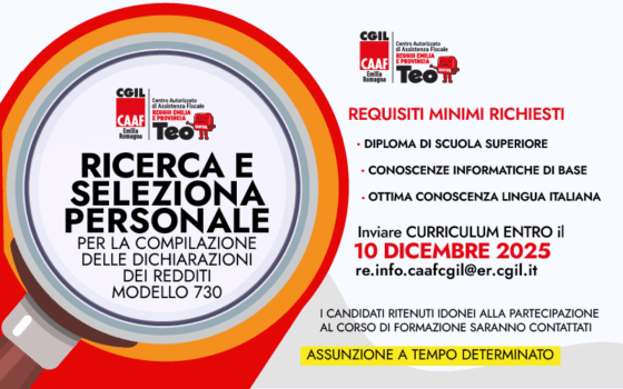 Il CAAF CGIL Emilia Romagna, nella sua sede di Reggio Emilia, seleziona personale – da assumere a tempo…