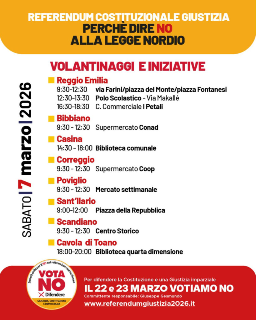 Sabato 7 marzo sarà a livello nazionale una giornata di mobilitazione straordinaria in cui tra banchetti, volantinaggi ed iniziative, realizzati in contemporanea in tutte le città italiane, il Comitato intende raggiungere capillarmente il maggior numero di cittadini e anche nel nostro territorio diverse sono le iniziative in programma per concorrere ad aumentare il livello di partecipazione e consapevolezza sui rischi che la controriforma Nordio rappresenta per il paese e per la democrazia.