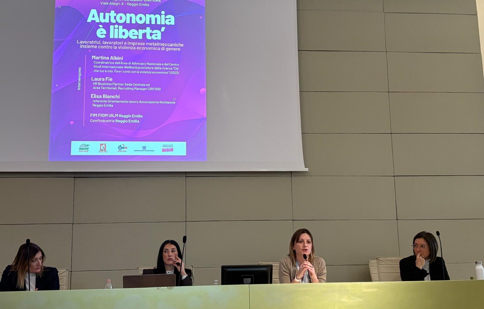 Si è svolta oggi pomeriggio, presso l’Aula magna Manodori dell’Università di Modena e Reggio Emilia, l’iniziativa “Autonomia è libertà. Lavoratrici, lavoratori e imprese metalmeccaniche contro la violenza economica di genere”, promossa dall’Associazione Nondasola – Centro antiviolenza – da Fiom Cgil Fim Cisl Uilm Uil e Confindustria Reggio Emilia.