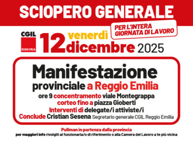 Venerdì 12 dicembre 2025, a Reggio Emilia come nel resto del Paese, sciopereremo per l’intera giornata di lavoro…